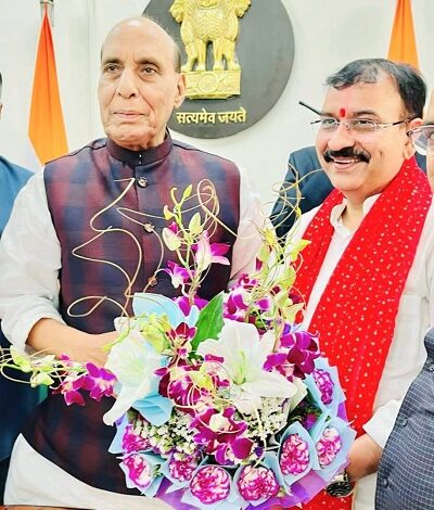 रक्षा मंत्री राजनाथ सिंह से नवनिर्वाचित अध्यक्ष आनंद द्विवेदी ने दिल्ली आवास पर भेंट करके आशीर्वाद लिया