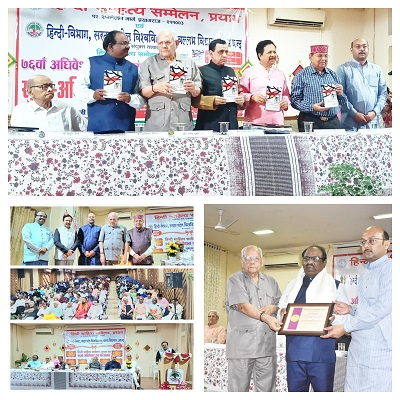 लखनऊ।सरदार पटेल विश्वविद्यालय के हिंदी विभाग के आचार्य एवं अध्यक्ष प्रो.दिलीप मेहरा द्वारा संपादित पुस्तक ‘आचार्य कुंवर चंद्र प्रकाश सिंह की साहित्य साधना’ का लोकार्पण हिंदी साहित्य सम्मेलन प्रयाग के 76वें अधिवेशन के अंतर्गत पद्मश्री डॉ.रविन्द्र कुमार, (पूर्व कुलपति श्री चरण सिंह विश्वविद्यालय मेरठ),पद्मश्री प्रो. राजेंद्र मिश्र जी (पूर्व कुलपति संपूर्णानंद संस्कृत विश्वविद्यालय,वाराणसी), लखनऊ विश्वविद्यालय के पूर्व आचार्य एवं अध्यक्ष प्रोफेसर सूर्यप्रसाद दीक्षित जी (साहित्य सम्मेलन सभापति) तथा सरदार पटेल विश्वविद्यालय, आणंद, गुजरात के कुलगुरु प्रो.निरंजनभाई पटेल जी के कर कमलों से संपन्न हुआ।