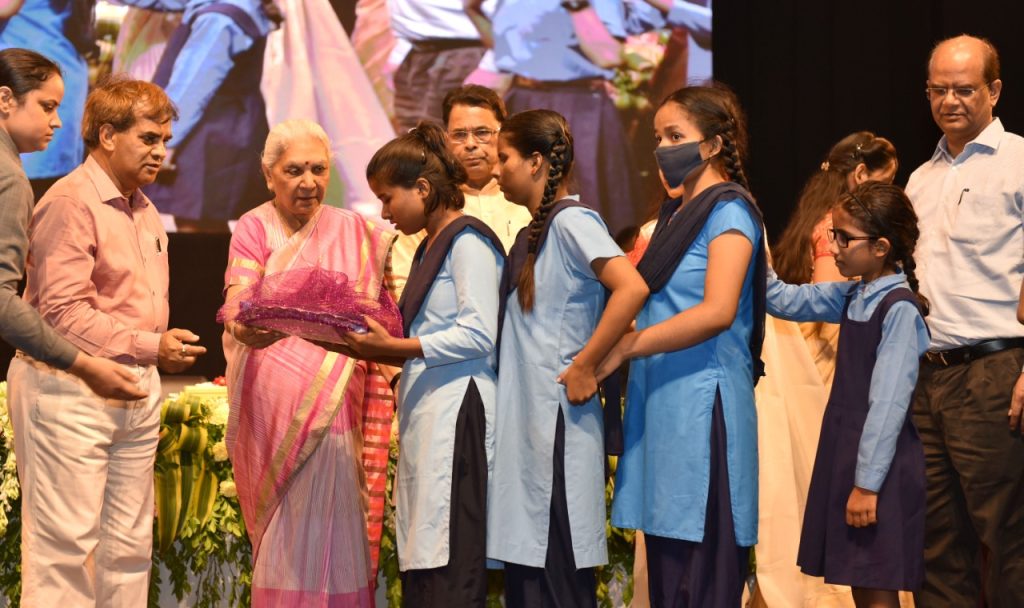 कार्यक्रम में राज्यपाल श्रीमती आनंदीबेन पटेल ने प्रदेश के विभिन्न विद्यालयों से आयीं कुल 30 दृष्टिबाधित बालिकाओं को वस्त्र, फल एवं मिष्ठान वितरित किया।