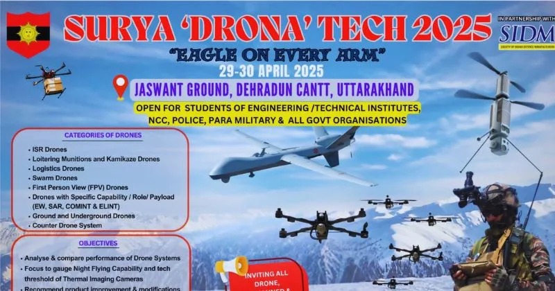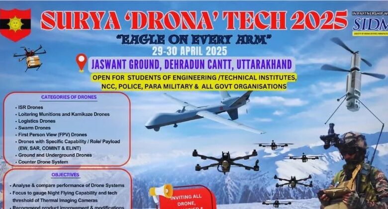 भारतीय सेना की मध्य कमान 29-30 अप्रैल 2025 को देहरादून में ‘सूर्या ड्रोन टेक – 2025’ का आयोजन करेगी