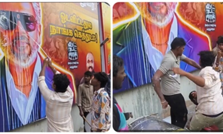 मदुरै। अभिनेता अजित कुमार की एक्शन फिल्म गुड बैड अग्ली गुरुवार को रिलीज हो चुकी है। फिल्म देखने पहुंचे दर्शकों में सिनेमाघरों के बाहर जबरदस्त उत्साह देखने को मिला। अजित के फैंस सिनेमाघरों के बाहर जश्न मनाते नजर आए।