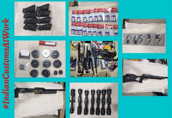 उत्तर प्रदेश-उत्तराखंड के कस्टम कमिश्नर वेद प्रकाश शुक्ला के मुताबिक, अमौसी एयरपोर्ट पर बीती रात दुबई से फ्लाइट नम्बर आईएक्स-194। से उतरे एक यात्री को शक के आधार पर रोका गया। यात्री के सामान की तलाश ली गई तो उसके पास से 10 एयरगन, टेलीस्कोप व अलग-अलग तरह के बैरेल और अन्य पुर्जे मिले हैं। बरामद सामान की कीमत तकरीबन 20 लाख 54 हजार रुपये है। एयरगन के वैध दस्तावेज या लाइसेंस नहीं मिला।