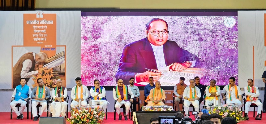 मुख्यमंत्री ने भाजपा कार्यकर्ताओं से कहा कि 10 वर्ष में प्रधानमंत्री नरेन्द्र मोदी के नेतृत्व में केंद्र व विभिन्न राज्यों की भाजपा सरकारों ने दलितों, वंचितों, पिछड़ों व महिलाओं के लिए कौन से कार्य किए हैं और उनकी उपलब्धि व परिणाम क्या हैं। कौन से ऐसे कारक थे, जो बाबा साहेब के सपनों को साकार करने में बाधक थे। जब हम सही तथ्य जनता के सामने रखेंगे ही नहीं, तो गुमराह करने वाले दल राजनीतिक सीढ़ियों पर चढ़कर सत्ता की ऊंची दुकानों के पकवानों का स्वाद लेकर दलितों, गरीबों, को उनके अधिकारों से वंचित करते रहेंगे। मुख्यमंत्री ने लोकसभा चुनाव के प्रकरण को याद किया और कहा कि चुनाव के समय यह लोग भारत का संविधान लगी फर्जी पुस्तिका प्रिंट कराते हैं और जगह-जगह जाकर जनता के सामने मायाजाल फैलाते हैं। किसी से छिपा नहीं है कि उस समय इन लोगों ने कैसी-कैसी बातें कहीं।