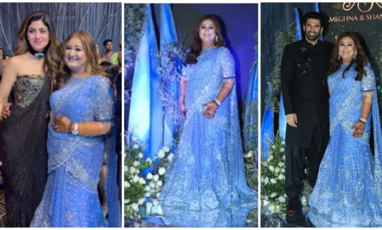 हालांकि इस सेरेमनी में मेघना सिंह की मम्मी यानि कि सीमा सिंह ने एक बार फिर अपने लुक से लाइमलाइट चुरा ली. बेटी के खास मौके के लिए सीमा ने लहंगा लुक चुना था. उन्होंने लाइट ब्लू कलर का लहंगा पहना, जिसे सेक्वीन सितारों से सजाया गया है.