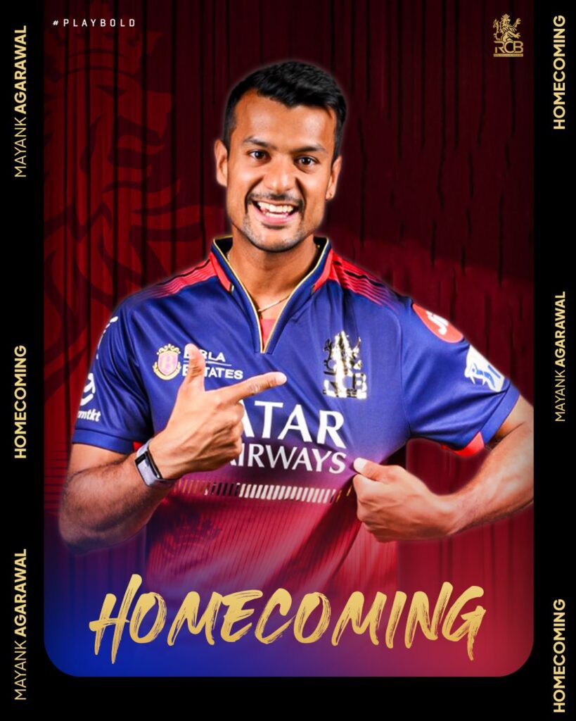 चोटिल पडिक्कल की जगह RCB ने मयंक अग्रवाल को टीम में किया शामिल