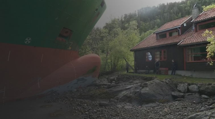 नॉर्वे में नाविक की गलती से विशाल मालवाहक जहाज घर के पास पहुंच गया