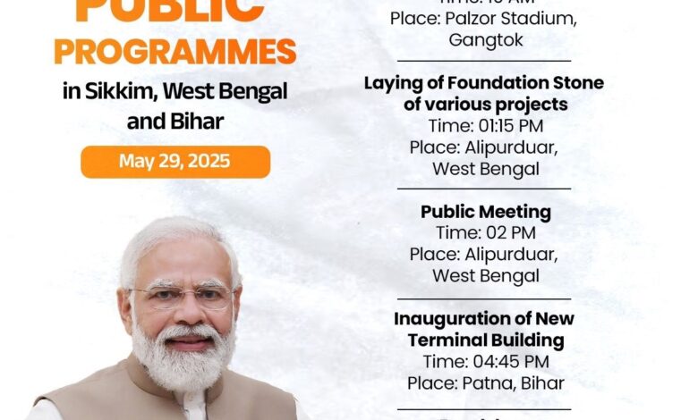 प्रधानमंत्री मोदी चार प्रदेशों की दो दिवसीय यात्रा पर, आज पहले जाएंगे सिक्किम, फिर बंगाल, बिहार, उत्तर प्रदेश का करेंगे दौरा