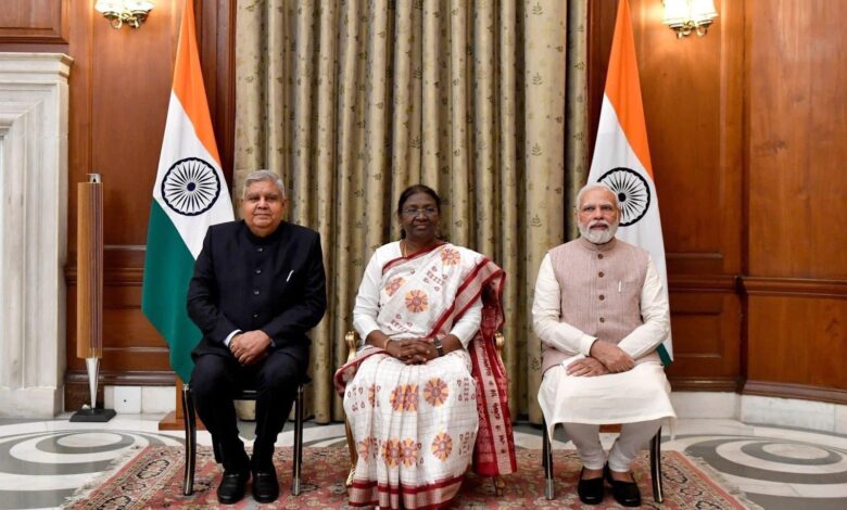 नई दिल्ली : राष्ट्रपति द्रौपदी मुर्मु, उपराष्ट्रपति जगदीप धनखड़ और प्रधानमंत्री नरेन्द्र मोदी ने तेलंगाना के स्थापना दिवस पर राज्य के लोगों को बधाई और सफलता व समृद्धि की शुभकामनाएं दीं। उन्होंने कहा कि राज्य ने राष्ट्रीय प्रगति में अनेकों योगदान दिए हैं।