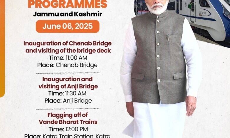 प्रधानमंत्री मोदी आज जम्मू-कश्मीर में चिनाब रेलवे पुल राष्ट्र को करेंगे समर्पित