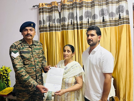 लखनऊ/ मेरठ: भारतीय सेना छब्बीसवाँ कारगिल विजय दिवस सामारोह 26 जुलाई, 2025 को मनाया जा रहा है, जिसके उपलक्ष्य में “घर घर शौर्य सम्मान महोत्सव” आयोजीत किया जा रहा हैं। इस महोत्सव के अंतर्गत घर घर जा कर शहीदों के परिजनों को सम्मान पत्र तथा स्मृति चिह्न भेंट किया जा रहा है।