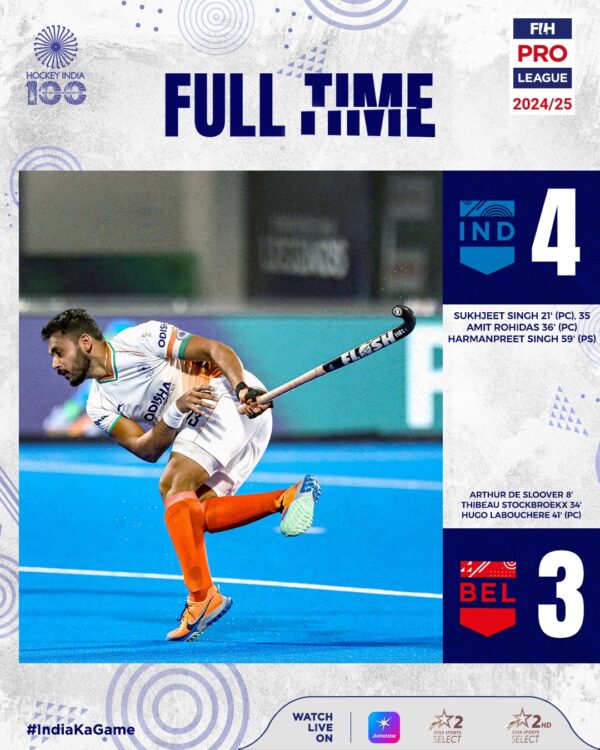 भारत ने बेल्जियम को हराया : एफआईएच प्रो लीग में जीत के साथ खत्म किया हार का सिलसिला