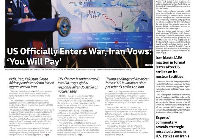 तेहरान : तेहरान टाइम्स अखबार ने अपनी रिपोर्ट में कहा है कि अमेरिकी राष्ट्रपति डोनाल्ड ट्रंप ने रविवार को ईरान के अंदर अमेरिकी बी-2 बमवर्षक विमान उड़ाए। वे ईरान के खिलाफ इजराइल के युद्ध में सीधे शामिल हुए। ईरान की तीन जगहों पर परमाणु सुविधाओं पर हमले किए। इसके बाद अपने सोशल ट्रुथ पर घोषणा की कि ईरान की प्रमुख परमाणु संवर्धन सुविधाओं को पूरी तरह से नष्ट कर दिया गया है। तेहरान टाइम्स का दावा है कि ट्रंप अपने हमलों की प्रभावशीलता का आकलन करने में गलत हैं। अमेरिकी हमले में ईरान के फोर्डो परमाणु केंद्र का बाल बांका नहीं बिगड़ा है।