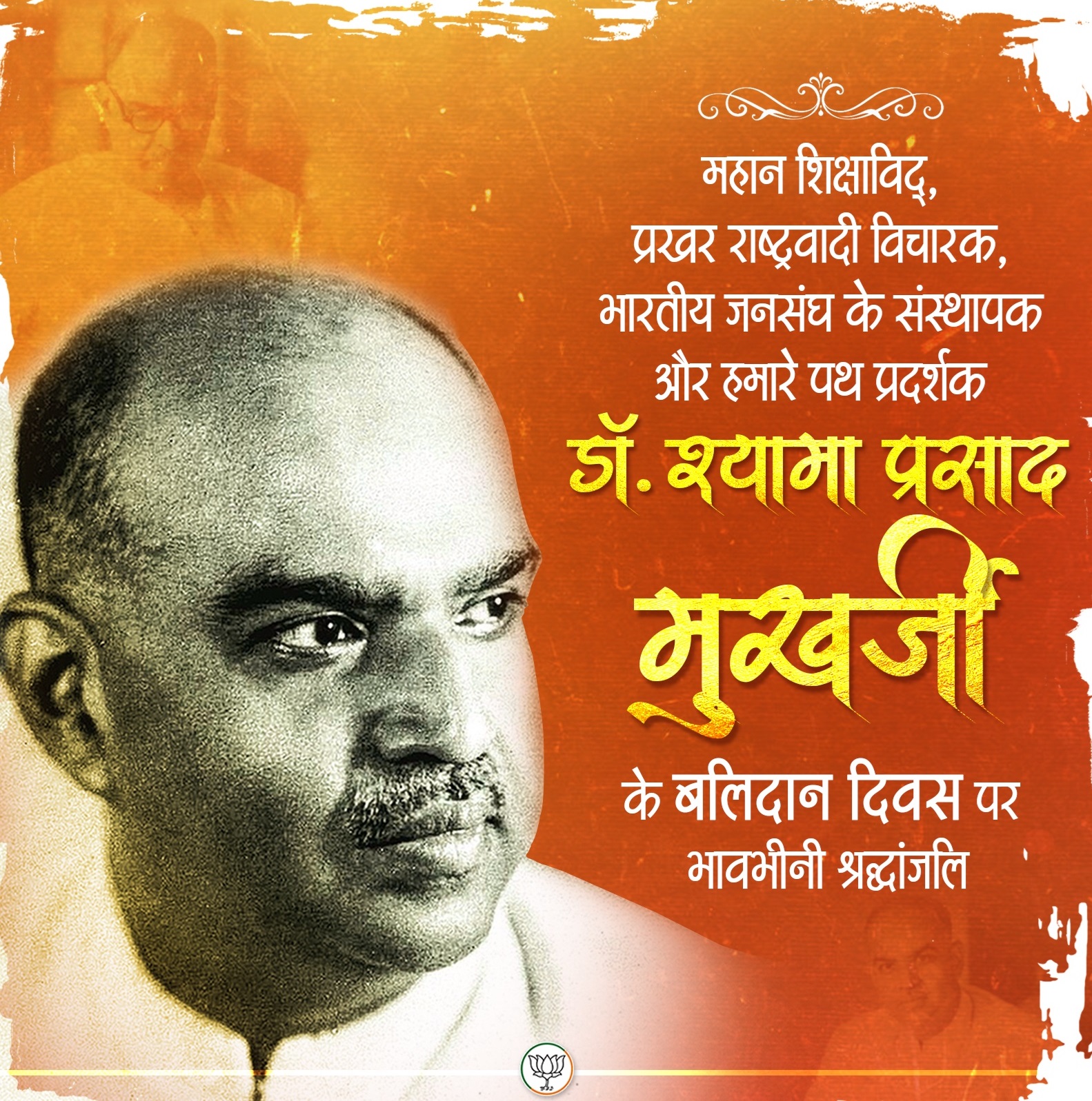 नड्डा ने कहा कहा, “आज डॉ. श्यामा प्रसाद मुखर्जी की पुण्यतिथि पर सभी जगह हमारे कार्यकर्ता उनकी याद में कार्यक्रम कर रहे हैं। वह बहुआयामी प्रतिभा के धनी थे। भाजपा ने अपने एक्स हैंडल पर डॉ. मुखर्जी को याद किया है।