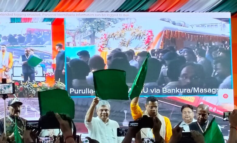 कोलकाता : केंद्रीय रेल, सूचना एवं प्रसारण तथा इलेक्ट्रॉनिक्स एवं आईटी मंत्री अश्विनी वैष्णव ने शनिवार को सांतरागाछी रेलवे स्टेशन से वीडियो कॉन्फ्रेंसिंग के माध्यम से पुरुलिया-बांकुड़ा-हावड़ा मेमू ट्रेन (मसाग्राम के रास्ते) की पहली सेवा को हरी झंडी दिखाकर रवाना किया। इस अवसर पर उन्होंने प्रधानमंत्री नरेन्द्र मोदी की रेलवे विस्तार, आधुनिकीकरण और यात्री सुविधाओं को लेकर प्राथमिकताओं का उल्लेख करते हुए कहा कि लगभग 12 लाख रेलवे कर्मचारी इस सपने को साकार करने के लिए सतत परिश्रम कर रहे हैं।