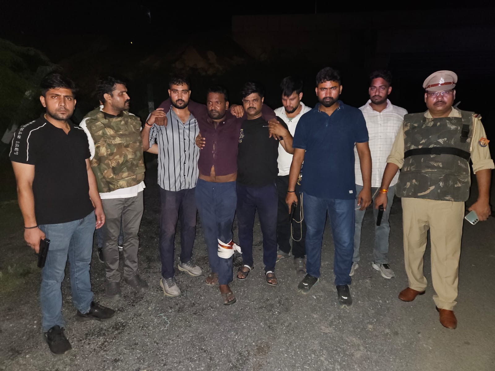 बीती देर रात को एसओजी जालौन को मुखबिर से सूचना मिली कि कुछ शातिर अपराधी, जो हमीरपुर, महोबा और आसपास के जिलों में लूट, डकैती, नकबजनी और रंगदारी जैसे जघन्य अपराधों में शामिल हैं, उरई के एक अंग्रेजी शराब के ठेके के पास एक कार के साथ देखे गए हैं। पुलिस अधीक्षक जालौन के निर्देश पर एसओजी, थाना डकोर पुलिस और अन्य थानों की टीमों ने सर्च ऑपरेशन शुरू किया। देर रात मुखबिर ने बताया कि चार अपराधी जैसारी कला नहर अंडर पास, बुंदेलखंड एक्सप्रेसवे के नीचे मारुति ईको कार (UP92AQ7489) के साथ खड़े हैं। इस दौरान पुलिस टीम ने घेराबंदी की, लेकिन अपराधियों ने फायरिंग शुरू कर दी। पुलिस ने जवाबी कार्रवाई में दो अपराधियों (नरेंद्र पाल और विष्णु) को घायल कर गिरफ्तार किया, जबकि एक (रामू) भाग निकला। कार चालक (शिवम यादव) ने आत्मसमर्पण कर दिया। नरेंद्र पाल जो कि महोबा के थाना चरखारी का रहने वाला है उसके ऊपर 20 से अधिक मामले दर्ज है। वहीं, हमीरपुर के थाना जरिया, निवासी विष्णु पर 18-20 मामले दर्ज है। इनके पास से पुलिस ने 02 अवैध तमंचे (315 बोर), 04 खोखा कारतूस + 04 जिंदा कारतूस 01 सफेद मारुति ईको कार (UP92AQ7489), 02 मोबाइल फोन, 01 लोहे का सब्बल, 01 पेंचकस, नकदी ₹2150 बरामद की है। फरार अभियुक्त रामू की गिरफ्तारी के लिए विशेष टीम गठित की गई है और ₹25,000 का इनाम घोषित किया गया है।