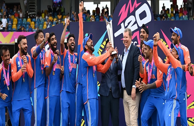 भारत ने आईसीसी टी20 विश्व कप 2024 के फाइनल में टॉस जीतकर पहले बल्लेबाजी करते हुए 20 ओवर में सात विकेट गंवाकर 176 रन बनाए थे। जवाब में दक्षिण अफ्रीका की टीम 20 ओवर में आठ विकेट पर 169 रन बना सकी थी। इस जीत के साथ भारतीय टीम ने दूसरी बार आईसीसी टी20 विश्व कप खिताब पर कब्जा करते हुए 11 साल के आईसीसी ट्रॉफी के सूखे को समाप्त किया था। भारत ने इससे पहले 2013 में चैंपियंस ट्रॉफी जीती थी। यह रोहित शर्मा का दूसरा आईसीसी टी20 विश्व कप खिताब और कप्तान के रूप में उनका पहला आईसीसी खिताब था।