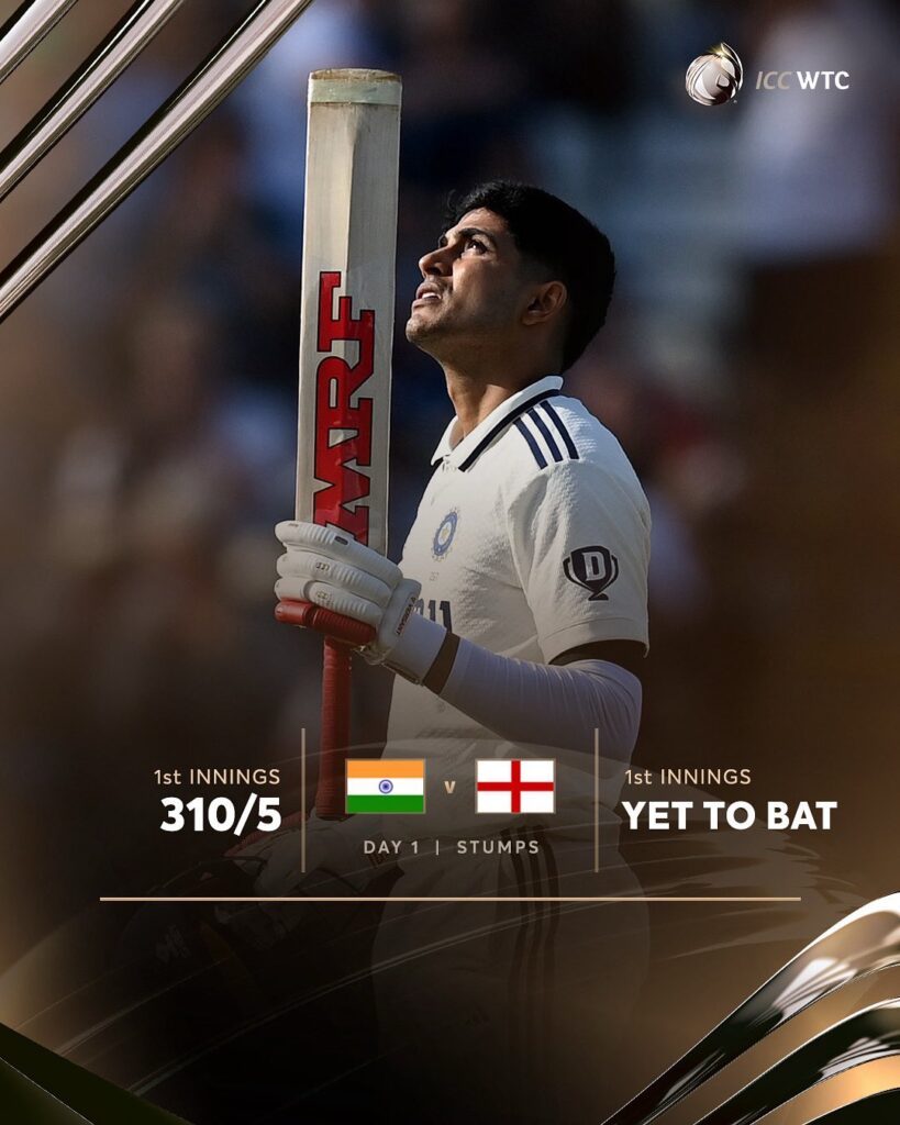 बर्मिंघम टेस्ट Day 1 : शुभमन गिल के शतक से भारत की मजबूत शुरुआत, इंग्लैंड के खिलाफ 310/5