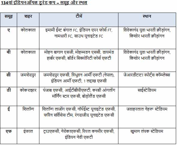 134वां डूरंड कप : आगाज 23 जुलाई से, ईस्ट बंगाल और साउथ यूनाइटेड के बीच पहला मुकाबला