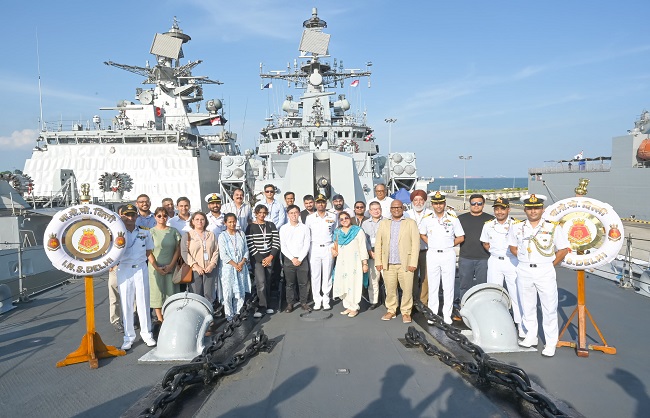 नई दिल्ली : दक्षिण पूर्व एशिया में तैनाती के दौरान पूर्वी बेड़े के जहाजों दिल्ली, शक्ति, सतपुड़ा और किल्टन ने सिंगापुर बंदरगाह पर अपनी यात्रा पूरी कर ली है। पूर्वी बेड़े के फ्लैग ऑफिसर कमांडिंग रियर एडमिरल सुशील मेनन के नेतृत्व ने इन जहाजों की 16 से 19 जुलाई तक परिचालन तैनाती की गई थी। यात्रा के दौरान सिंगापुर में भारत के उच्चायुक्त और सिंगापुर गणराज्य की नौसेना के फ्लीट कमांडर से मुलाकात हिंद-प्रशांत क्षेत्र में द्विपक्षीय नौसैनिक संबंधों और समुद्री सहयोग को बढ़ाने के अवसरों और संभावनाओं पर चर्चा की गई।