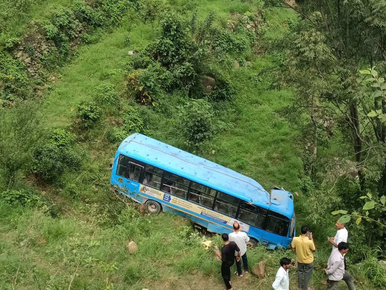 हिमाचल प्रदेश के मंडी में एचआरटीसी बस खेतों में गिरी, एक की मौत, कई घायल