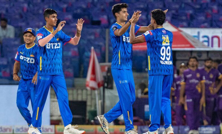 टीम के स्टार गेंदबाज़ और पर्पल कैप धारक उदव मोहन ने एक बार फिर दबाव में शानदार प्रदर्शन किया और 4 ओवर में 29 रन देकर 2 विकेट हासिल किए, जिसकी बदौलत टीम ने 10 रन से जीत दर्ज की।