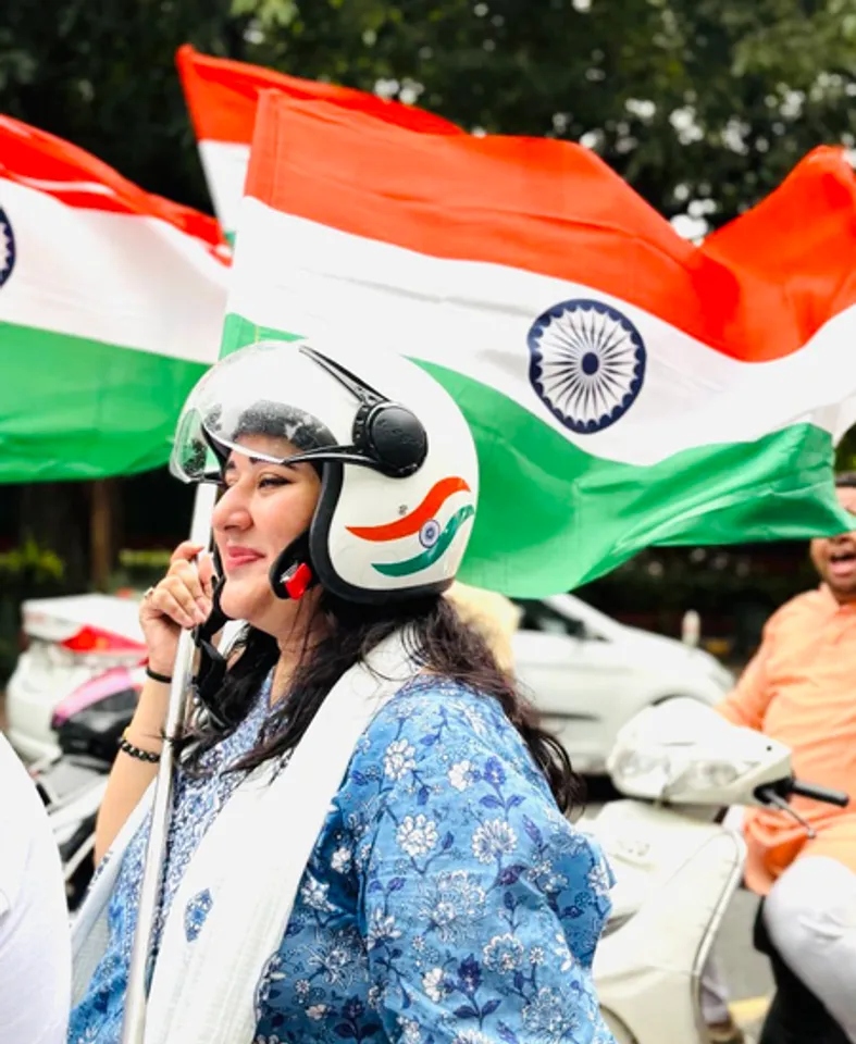 बांसुरी स्वराज ने 12 अगस्त की तिरंगा यात्रा का उदाहरण देते हुए कहा कि इस यात्रा के लिए उन्होंने हेलमेट खुद बनवाया क्योंकि हेलमेट सिर्फ सुरक्षा ही प्रदान नहीं करता है, यह आपके सेल्फ-एक्सप्रेशन का भी माध्यम है। मैंने हेलमेट के पीछे जय हिंद लिखा।