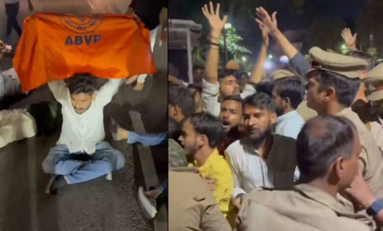 मंत्री ओम प्रकाश राजभर के बयान पर भड़के एबीवीपी के कार्यकर्ता, आवास के सामने देर रात किया प्रदर्शन