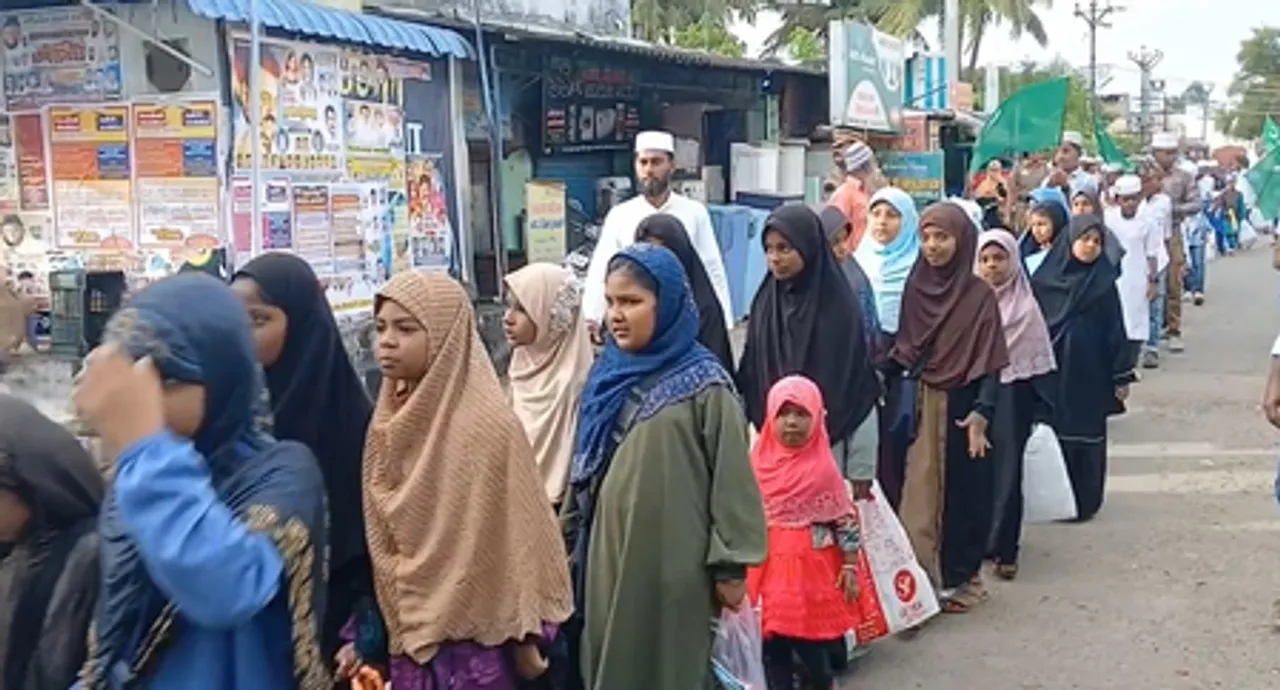 इस जुलूस का आयोजन सेम्बागाउंडर कॉलोनी स्थित मदरसा रहमानिया मस्जिद के छात्रों ने किया, जिसमें सामाजिक सद्भाव और राष्ट्रीय कल्याण को बढ़ावा देने पर जोर दिया गया।