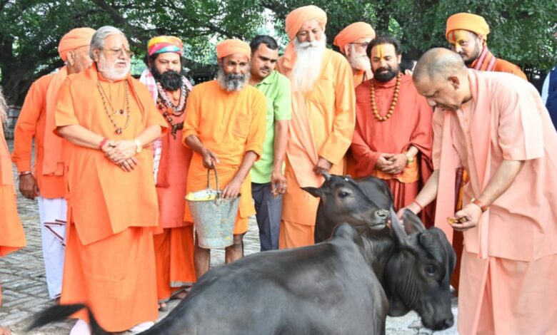 सीएम योगी ने की गोसेवा,भवानी और भोलू को दुलारा, पुंज को भी खिलाया गुड़