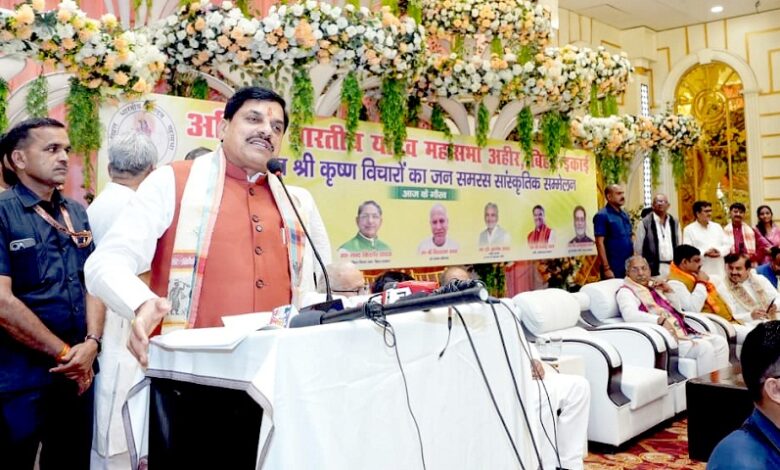 मुख्यमंत्री डॉ. यादव ने सांस्कृतिक सम्मेलन में कहा कि भगवान श्रीकृष्ण यदुकुल के महान गौरव हैं। वे योगीराज थे। सभी ललित कलाओं में निपूर्ण थे। उन्होंने मात्र 11 साल की उम्र में कंस जैसे शक्तिशाली एवं आततायी राजा से युद्ध कर तत्समय लोकतंत्र के मूल्यों की रक्षा की। उन्होंने कहा कि विश्व को गीता का ज्ञान देने वाले भगवान श्रीकृष्ण के सम्मान में हमारी सरकार मध्यप्रदेश के हर नगरीय निकायों में गीता भवनों का निर्माण करने जा रही है। भगवान श्रीकृष्ण के गुरु सांदीपनि के नाम पर हम मध्य प्रदेश में 300 से अधिक स्थानों पर सांदीपनि विद्यालयों की स्थापना कर गुरुकुल शिक्षा पद्धति को प्रोत्साहित कर रहे हैं।