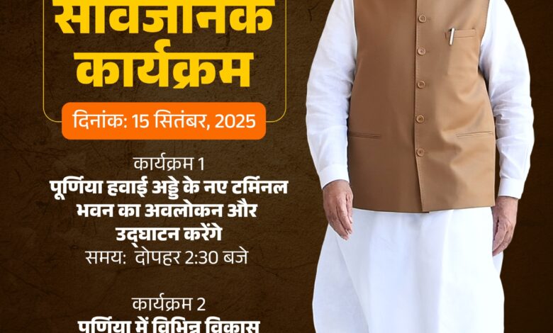 प्रधानमंत्री मोदी इस अवसर पर राष्ट्रीय मखाना बोर्ड की स्थापना करेंगे। रेलवे लाइन और नई ट्रेन का शुभारंभ करेंगे। पूर्णिया हवाई अड्डे का उद्घाटन इस यात्रा का मुख्य आकर्षण होगा। कोलकाता के बाद यह पूर्वी भारत और बिहार का सबसे बड़ा हवाई अड्डा है। 2,800 मीटर लंबा रन-वे बड़े विमानों जैसे एयरबस और बोइंग के संचालन के लिए उपयुक्त है। 4,000 वर्ग मीटर में फैला टर्मिनल भवन अत्याधुनिक सुविधाओं से लैस है। इसे अगले 40 वर्ष तक बढ़ते यातायात को संभालने के लिए डिजाइन किया गया है।