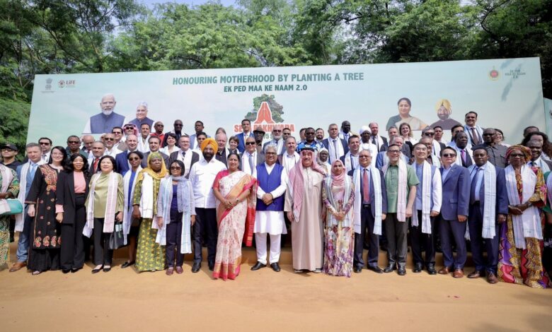 दिल्ली में 70 देशों के राजनयिकों ने अपनी मां के नाम पर किया पौधरोपण