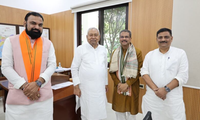केंद्रीय मंत्री और बिहार चुनाव प्रभारी धर्मेंद्र प्रधान ने मुख्यमंत्री नीतीश से की मुलाकात