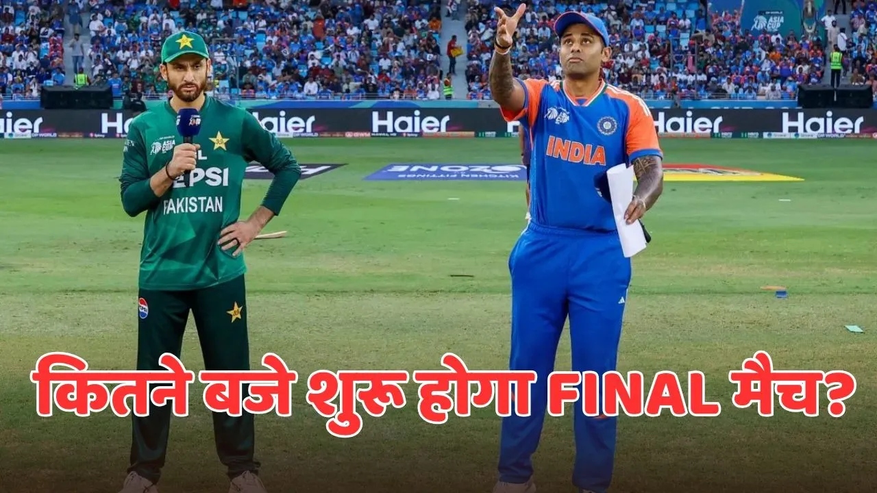 भारत और पाकिस्तान के बीच एशिया कप 2025 का फाइनल मैच दुबई इंटरनेशनल क्रिकेट स्टेडियम में खेला जाने वाला है. ये मैच रात 8 बजे से शुरू होगा, जिसके टॉस के लिए दोनों कप्तान 7.30 बजे मैदान पर उतरेंगे.