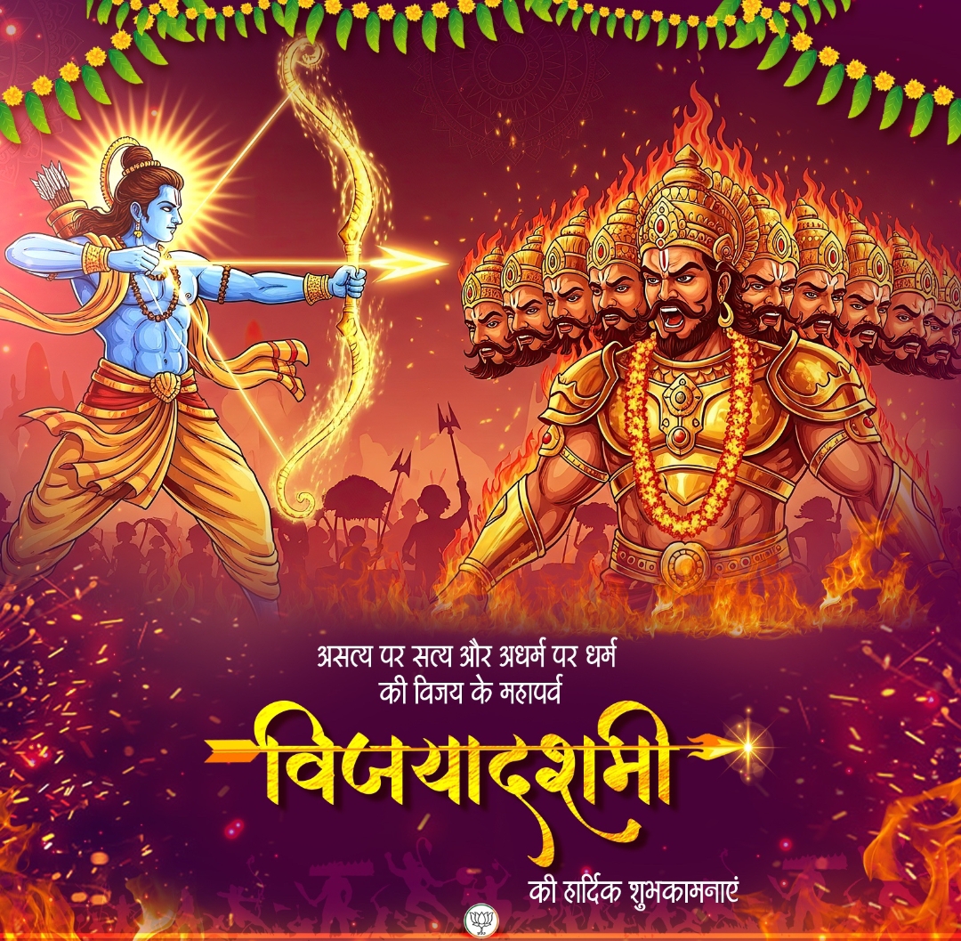 भाजपा ने देशवासियों को विजयादशमी की शुभकामनाएं दी हैं। भाजपा अध्यक्ष जेपी नड्डा ने एक्स पर लिखा- “धर्मो जयति नाधर्मः सत्यं जयति नानृतम्“