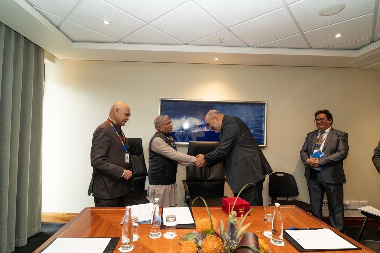 जर्मनी के पास एक ‘कुशल श्रम रणनीति’ भी है जो भारतीय पेशेवरों के जर्मनी जाने के मार्ग को सुगम बनाने पर केंद्रित है। उन्होंने दक्षिण अफ्रीका की राष्ट्रीय सभा की स्पीकर सुश्रीथोको दीदिजा से भी भेंट की। इस अवसर पर दोनों नेताओं ने भारत और दक्षिण अफ्रीका के बीच लंबे समय से चले आ रहे ऐतिहासिक एवं प्रगाढ़ द्विपक्षीय संबंधों का स्मरण किया। उन्होंने इस बात पर भी बल दिया कि दोनों देशों का अंतरराष्ट्रीय निष्पक्षता, न्याय तथा विकासशील देशों के सामूहिक हितों की रक्षा के प्रतिसमान दृष्टिकोण है। दक्षिण अफ्रीका के प्रमुख तीन व्यापारिक साझेदारों में भारत शामिल है। इससे पहले, उन्होंने इतालवी सीनेट की वाइस प्रसीडेंट, लिशिया रोंज़ुली के नेतृत्व में इतालवी प्रतिनिधिमंडल के साथ द्विपक्षीय बैठक की। अपनी बैठक में उन्होंने विशेष रूप से व्यापार और निवेश, शिक्षा, रक्षा, संस्कृति, शिक्षा और लोगों के बीच संबंधों के क्षेत्रों में हुई प्रगति पर चर्चा की।