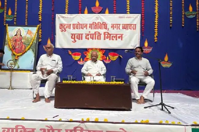 इस अवसर में संघ के विभाग संघचालक उदयसिंह चौहान, नगर संघचालक राधेश्याम शर्मा मंचासीन रहे। इस आयोजन का मुख्य उद्देश्य नवदंपत्तियों में पारिवारिक एकता, भारतीय संस्कृति, परंपराओं और जीवन मूल्यों के प्रति जागरुकता बढ़ाना था।__