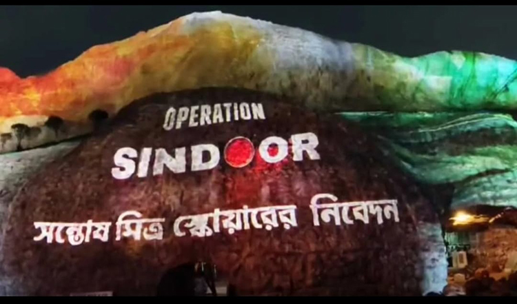 पूजा कमेटी ने ऑपरेशन सिंदूर की थीम पर अपना पंडाल बनाया है। इस पूजा के आयोजक भाजपा पार्षद सजल घोष हैं। पुलिस ने पंडाल में प्रकाश व साउंड की व्यवस्था करने वाली राजस्थान की संस्था एके प्रोजेक्टिंग से लाइसेंस व वहां लेजर शो की अनुमति संबंधित दस्तावेज मांगे हैं।