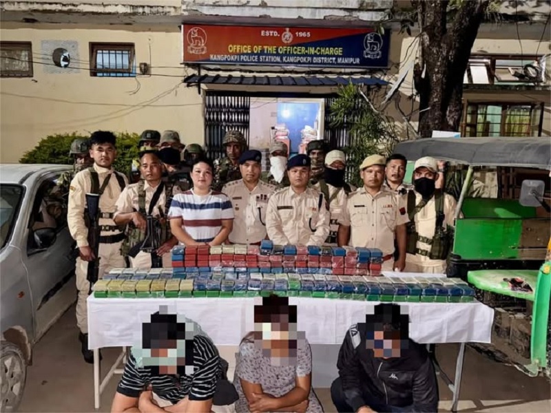 मणिपुरः भारी मात्रा में संदिग्ध ब्राउन शुगर जब्त, 3 गिरफ्तार