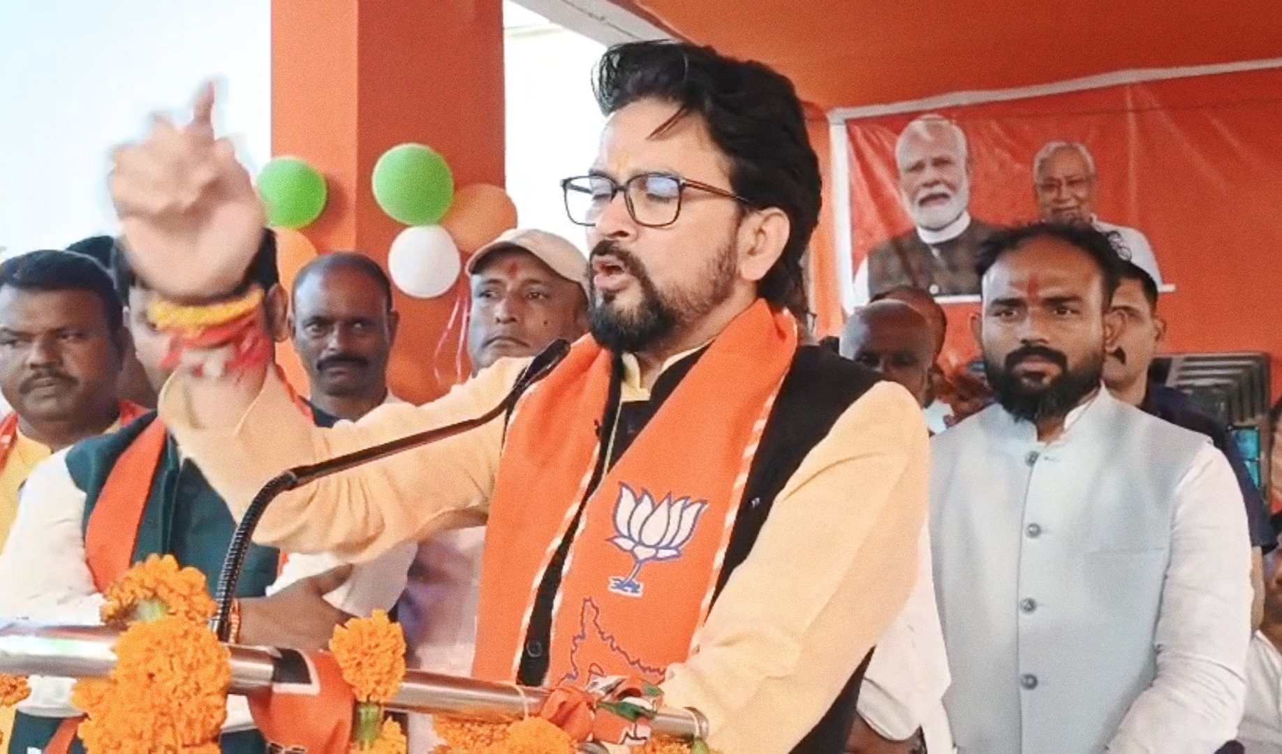 अररिया : अररिया के कुर्साकांटा सुभाष स्टेडियम में केंद्र सरकार के पूर्व मंत्री एवं हिमाचल प्रदेश के हमीरपुर से सांसद अनुराग ठाकुर ने गुरुवार को सिकटी के भाजपा प्रत्याशी विजय कुमार मंडल के नामांकन सह आशीर्वाद यात्रा के तहत आयोजित जनसभा में जमकर दहाड़ा।उन्होंने कहा कि एनडीए के मतलब नेशनल डेमोक्रेटिक एलायंस ही नहीं इसका मतलब नेशनल डेवलपमेंट एलायंस भी है।अर्थात जहां एनडीए है वहां विकास है,विश्वास है,सुशासन है,बढ़िया उद्योग है,जनता का राज है,पूरे होते काज हैं,बढ़िया लॉ एंड ऑर्डर है,सुरक्षित बॉर्डर है और युवाओं के हाथ में काम है।