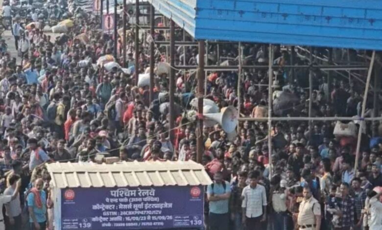 गुजरात के सूरत के उधना रेलवे स्टेशन पर यात्रियों की 3 किमी लंबी लाइन, मोदी से मदद की अपील