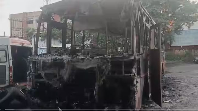 पुणेः बाल-बाल बचे 50 यात्री, एसटी बस देखते ही देखते जलकर खाक