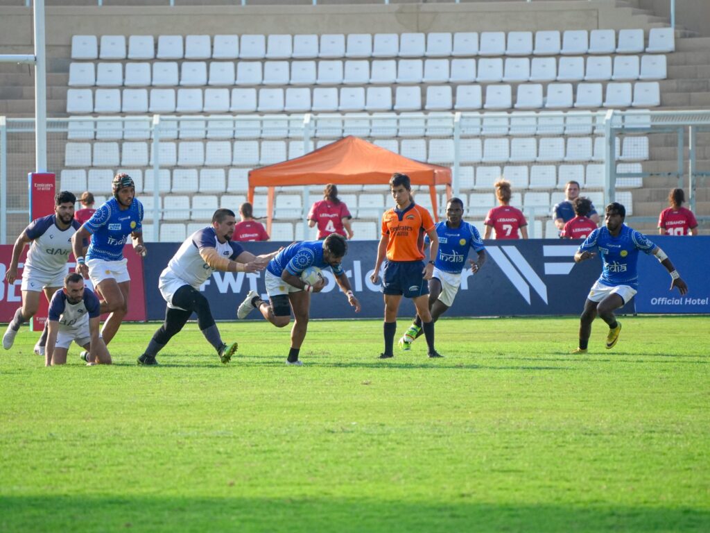 एशिया रग्बी एमिरेट्स सेवंस ट्रॉफी के पहले दिन भारतीय पुरुष रग्बी टीम ने बेहतरीन प्रदर्शन करते हुए अपने तीनों मैच जीत कर सेमीफाइनल में जगह बनाई। भारत ने टूर्नामेंट के अपने पहले मैच में लेबनान को 14-10 से हराया।