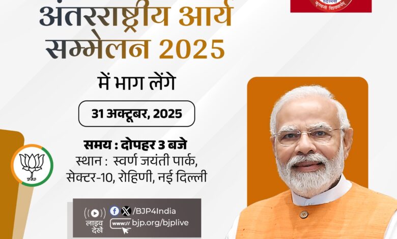 नई दिल्ली : प्रधानमंत्री नरेन्द्र मोदी आज नई दिल्ली के रोहिणी में अंतरराष्ट्रीय आर्यन शिखर सम्मेलन में शामिल होंगे। इस दौरान प्रधानमंत्री सभा को भी संबोधित करेंगे। प्रधानमंत्री कार्यालय (पीएमओ) के अनुसार, सम्मेलन में भारत और विदेशों से आर्य समाज की विभिन्न शाखाओं के प्रतिनिधि भाग लेंगे। भारतीय जनता पार्टी (भाजपा) ने भी प्रधानमंत्री नरेन्द्र मोदी के कार्यक्रम को एक्स पर साझा किया है।भाजपा के अनुसार, प्रधानमंत्री मोदी अपराह्न तीन बजे अंतरराष्ट्रीय आर्यन शिखर सम्मेलन में हिस्सा लेंगे। सम्मेलन का आयोजन रोहिणी में सेक्टर-10 के स्वर्ण जयंती पार्क में किया जाएगा। पीएमओ के अनुसार, कार्यक्रम में “150 गोल्डन ईयर्स ऑफ सर्विस” शीर्षक से प्रदर्शनी भी लगाई जाएगी। इसमें शिक्षा, सामाजिक सुधार और आध्यात्मिक उन्नति में आर्य समाज के योगदान को प्रदर्शित किया जाएगा।सम्मेलन का उद्देश्य महर्षि दयानंद सरस्वती की सुधारवादी और शैक्षिक विरासत का सम्मान करना है। साथ ही आर्य समाज की 150 वर्ष की सेवा का उत्सव मनाना और वैदिक सिद्धांतों व स्वदेशी मूल्यों के प्रति जागरुकता बढ़ाना भी इसका हिस्सा है।उल्लेखनीय है कि यह शिखर सम्मेलन ज्ञान ज्योति महोत्सव का हिस्सा है। यह महोत्सव महर्षि दयानंद सरस्वती की 200वीं जयंती और आर्य समाज की समाज सेवा के 150 वर्ष पूरे होने के उपलक्ष्य में आयोजित किया जा रहा है।