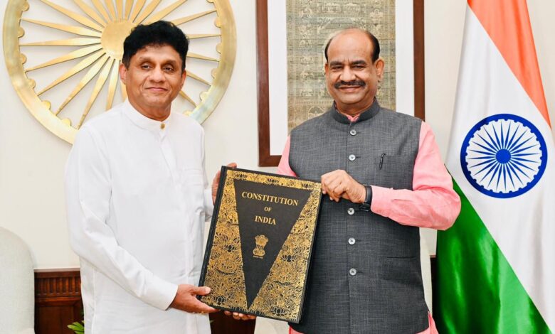 नई दिल्ली : श्रीलंका की संसद में विपक्ष के नेता सजिथ प्रेमदासा का भारतीय संसद में स्वागत करते हुए लोकसभा अध्यक्ष ओम बिरला ने कहा कि यह दोनों लोकतांत्रिक देशों के गहरे और ऐतिहासिक संबंधों का प्रतीक है। उन्होंने कहा कि भारत और श्रीलंका के बीच सांस्कृतिक, ऐतिहासिक और जन-जन के स्तर पर जुड़ाव दोनों देशों की साझी विरासत को नई ऊँचाइयाँ प्रदान करता है।