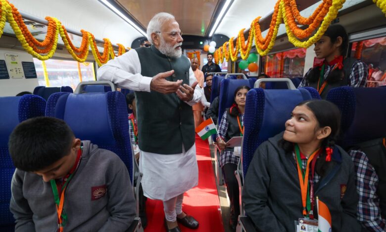 वाराणसी : प्रधानमंत्री नरेन्द्र मोदी शनिवार को अपने दो दिवसीय काशी दौरे के दूसरे दिन एक अलग ही रूप में नजर आए। ‘अपनी काशी’ में इस बार वे देश के भावी नागरिकों यानी स्कूली बच्चों के बीच एक स्नेही अभिभावक और मित्र की भूमिका में दिखे।बनारस (मंडुवाडीह) रेलवे स्टेशन के प्लेटफॉर्म नंबर आठ पर चार वंदे भारत ट्रेनों को हरी झंडी दिखाने से पहले प्रधानमंत्री मोदी ने बनारस से खजुराहो के लिए रवाना होने वाली वंदे भारत एक्सप्रेस की एक बोगी में जाकर स्थानीय स्कूली बच्चों से आत्मीय संवाद किया। उन्होंने बच्चों से दोस्त सरीखे सहज अंदाज में अभिवादन के साथ उनके कंधे पर हाथ रख बातचीत की। बच्चों पर स्नेह लुटाते हुए प्रधानमंत्री ने उनसे कविता भी सुनी और कविता सुनने के बाद उन्हें शाबाशी भी दी। प्रधानमंत्री ने बच्चों के हाथों बनी चित्र को देखा सराहा। बच्चों को पीएम मोदी सर का ये अंदाज खूब भाया। प्रधानमंत्री से मिलने के बाद छात्र- छात्राओं की खुशी का ठिकाना न रहा। वे इसकी तस्वीरे अपने परिजनों को भेजते रहे। सोशल मीडिया में भी प्रधानमंत्री का ये अंदाज और बच्चों से संवाद छाया हुआ है। प्रधानमंत्री ने बच्चों से भरी बोगी में भ्रमण के बाद लोको पायलट से भी इंजन में जाकर बातचीत की और ट्रेन संचालन की जानकारी ली।इसके बाद कार्यक्रम के मंच से अपने संबोधन में प्रधानमंत्री ने कहा कि वंदे भारत ट्रेनों के उद्घाटन के दौरान विद्यार्थियों ने “विकसित भारत” पर सुंदर कविताएं और चित्र प्रस्तुत किए। “काशी के सांसद के रूप में मुझे गर्व है कि मेरे शहर के बच्चे इतने प्रतिभाशाली हैं। उन्होंने वंदे भारत ट्रेनों के शुभारंभ के दौरान छात्रों के बीच प्रतियोगिता आयोजित करने की परंपरा शुरू करने के लिए रेलमंत्री अश्विनी वैष्णव की जमकर प्रशंसा की। प्रतियोगिता में प्रस्तुत चित्रों और कविताओं के लिए बच्चों की सराहना की, जो विकसित भारत, विकसित काशी, सुरक्षित भारत जैसे विभिन्न विषयों पर आधारित थे। उन्होंने उनके अभिभावकों और शिक्षकों द्वारा दिए गए सहयोग, मार्गदर्शन और प्रोत्साहन के लिए उनकी भी सराहना की।प्रधानमंत्री ने आगे एक बाल साहित्य सम्मेलन आयोजित करने का विचार रखा और 8-10 विजेताओं को देशभर में अन्य प्रतियोगिताओं में भाग लेने के लिए आमंत्रित किया। उन्होंने कहा कि मैं चाहता हूं कि इन बच्चों का कवि सम्मेलन काशी में कराया जाए और कुछ बच्चों को पूरे देश में ले जाया जाए। सभी अपने-अपने अनुभव साझा करते रहे। प्रधानमंत्री ने कहा कि विकसित भारत के निर्माण में काशी की भूमिका अग्रणी रहेगी। हमें काशी के विकास की ये गति, ये ऊर्जा बनाए रखनी है, ताकि भव्य काशी तेजी से समृद्ध काशी भी हो, और पूरी दुनिया से जो भी काशी आए, वो बाबा विश्वनाथ की इ