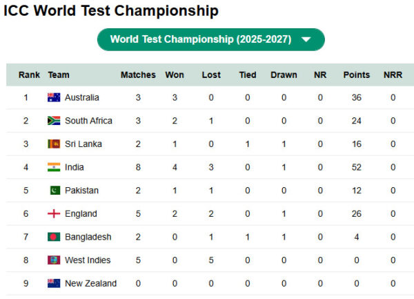 टीम दो पायदान की छलांग लगाकर सीधा टॉप-2 में आ गया है। शुभमन गिल की अगुवाई वाली टीम इंडिया को इस हार के साथ डब्ल्यूटीसी अंक तालिका में नुकसान झेलना पड़ा है।