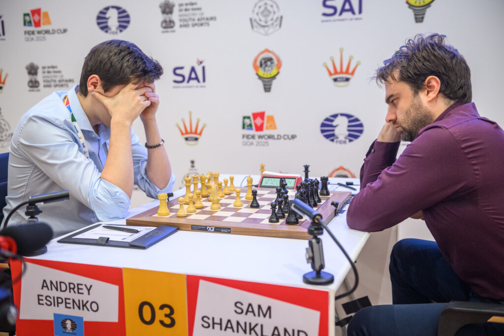 जीएम आंद्रे एसिपेंको और जीएम सैम शैंकलैंड का स्कोर बराबर रहा (कुल स्कोर 1:1)