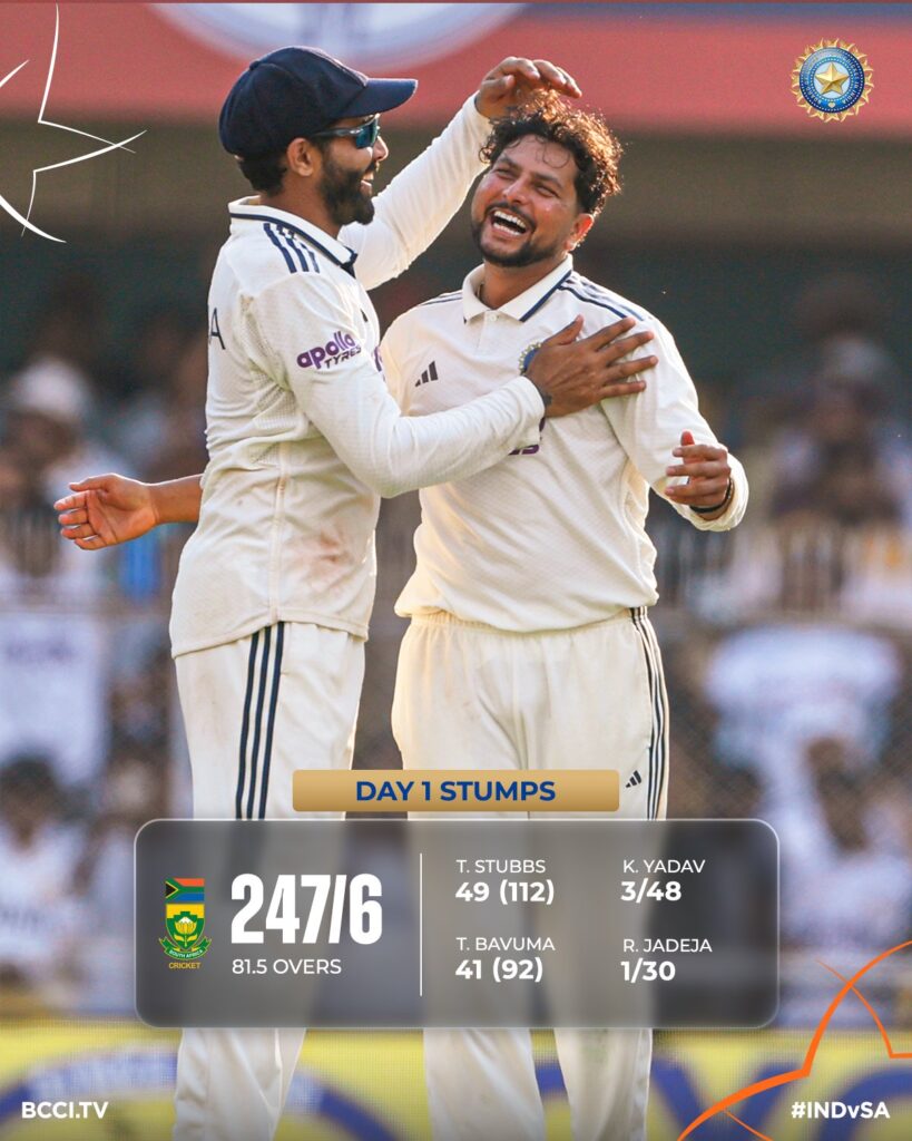 बरसापारा टेस्ट: भारत ने रोकी साउथ अफ्रीका की बढ़त, कुलदीप यादव की गेंदबाजी का जादू