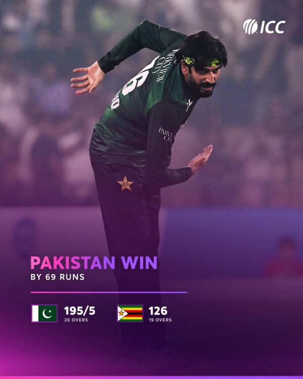 फखर जमन ने इस मैच में फिनिशर का रोल अदा किया। 7वें नंबर पर आकर उन्होंने 27 रनों की धुआंधार पारी खेली। पाकिस्तान इस तरह निर्धारित 20 ओवर में 5 विकेट के नुकसान पर 195 के स्कोर तक पहुंचने में कामयाब रहा। 196 के टारगेट का पीछा करने उतरी जिम्बाब्वे की टीम की शुरुआत अच्छी नहीं रही।